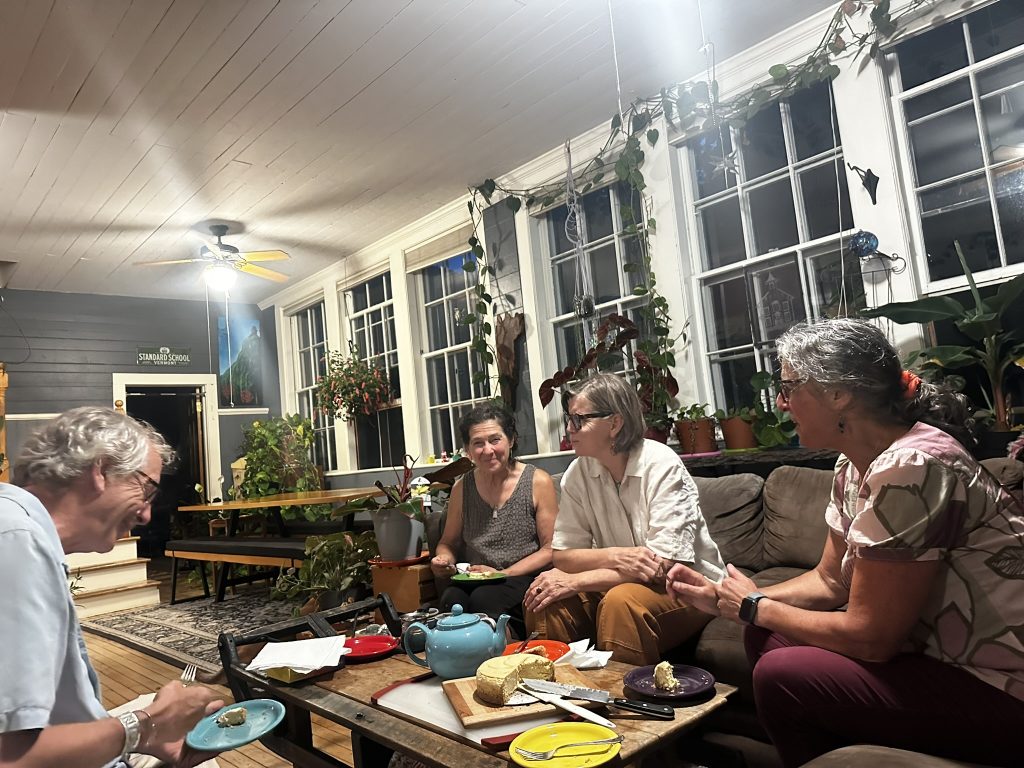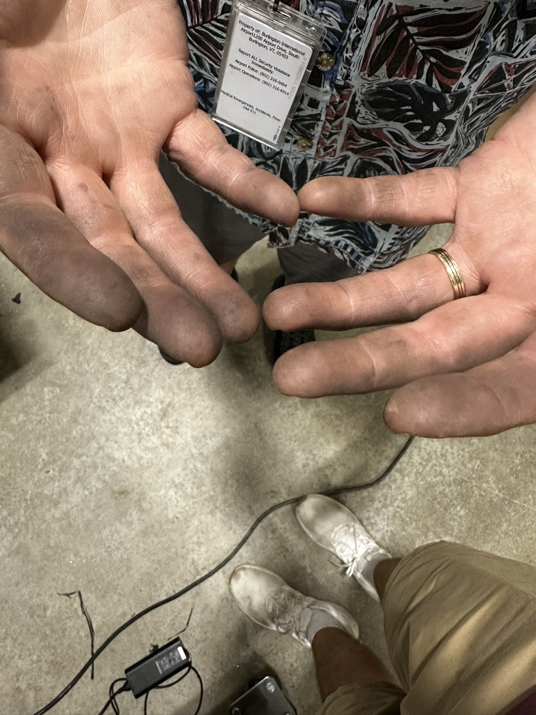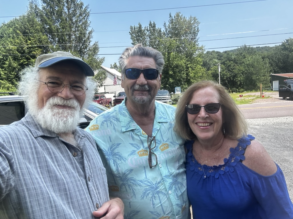 Got home .. DIane went up to Jens to work on some tiles they’re making, so I started working on Fluffy documentation (ugh !).. When I heard a knock on the door. It was our friends and former neighbors Mark and Deb. They were my neighbors in Hinesburg in 1981 (!).. then neighbors here in Jonesville where they owned the sawmill across the street. It was really great catching up with them . They’ve moved down to Florida now.. and are enjoying life. Mark’s building a new shop next to their house. He loves working with his hands. THey’re up for a family reunion.. Super good catching up