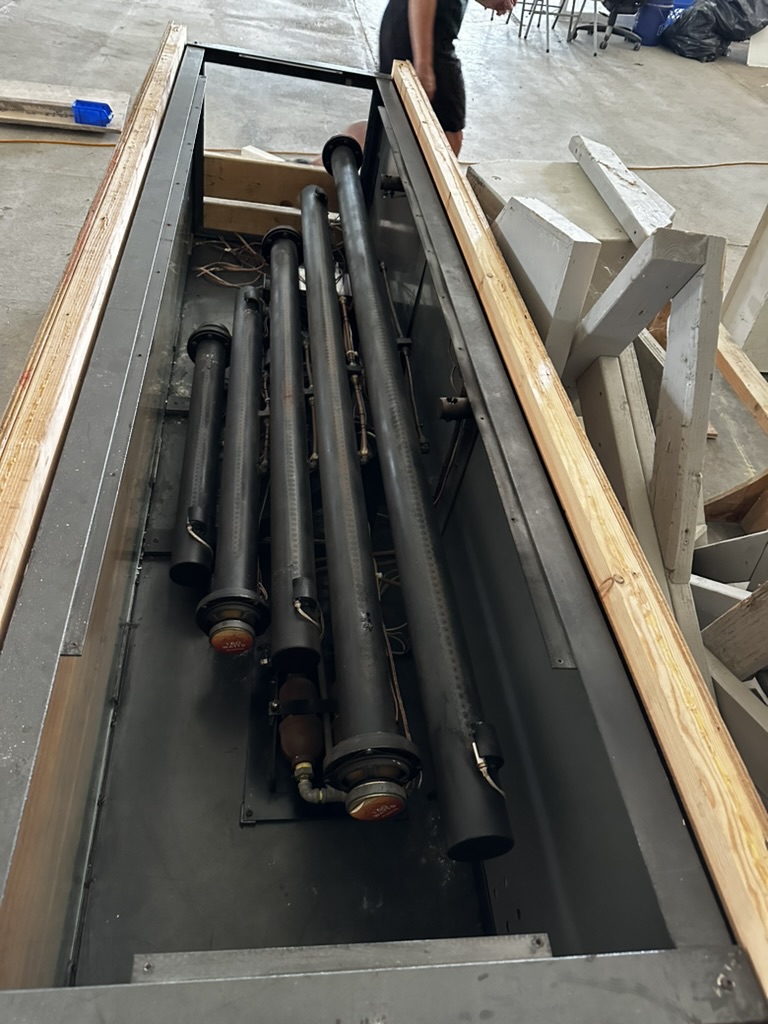 Later in the day, DIane and I drove down to Fluffy to check on a few things.. Top of the list was figuring out what to do with the fire organ I inherited from one of Max’s friends. We’d traveled down to NYC last year to retrieve it.. then shuffled it from friend Johns rock working shop down to Earthkeep where it’ sat with Fluffy for a year. Honestly,, with fluffy and other projects I just haven’t had a chance to unpack it and get it working. Now we’re getting kicked out of Earthkeep by the new owners.. I have to find a home for this beast.. (it’s 2′ x 3′ x 8′ and weighs about 500 lbs !) ..
