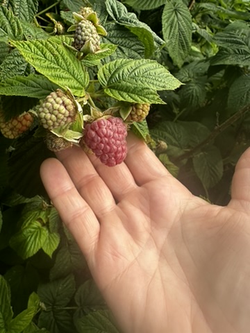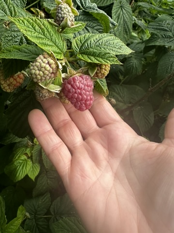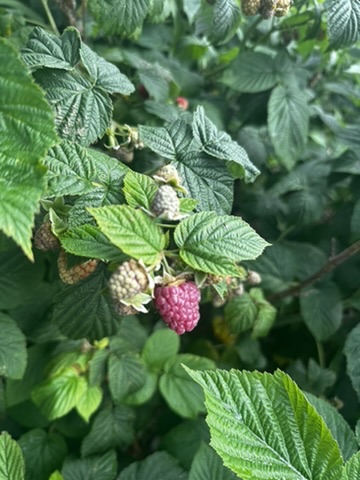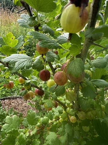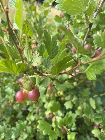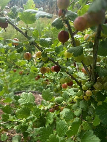 NIce queit day.. began with furit salad made by picking from all of our fruiting blueberries, raspberries, gooseberries and currants.. So delicious when picked right off the plants !