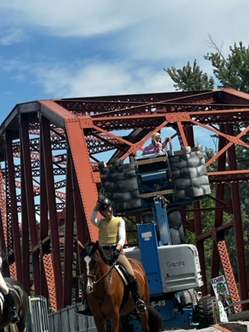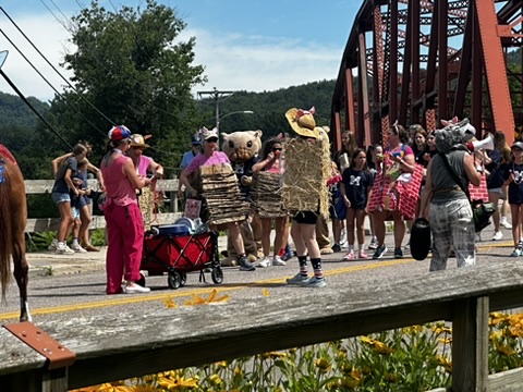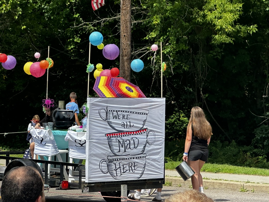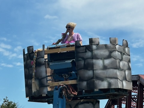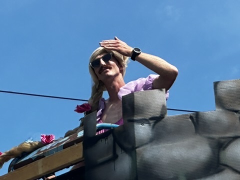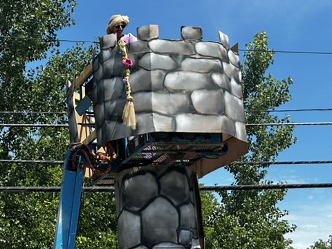 My favorite float was our freind Austin.. dressed as rapunzel.. driving his high lift.. Super funny.. .. glad he ducked under the bridge !