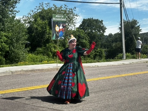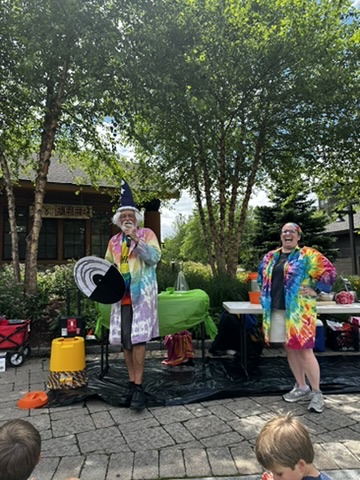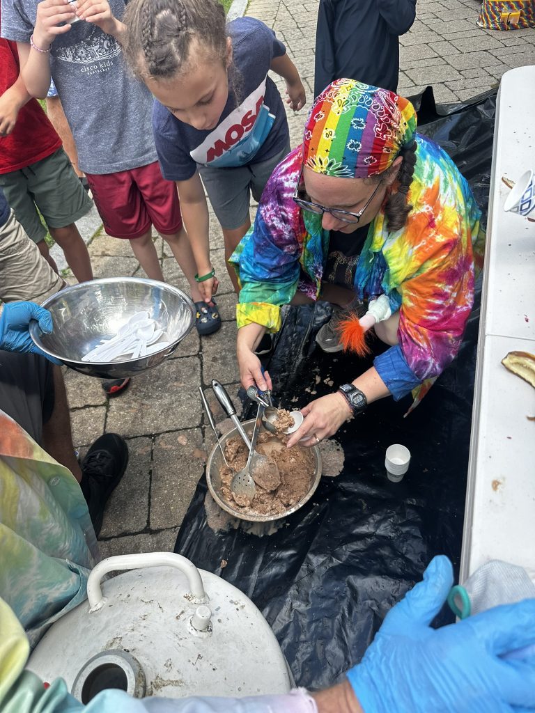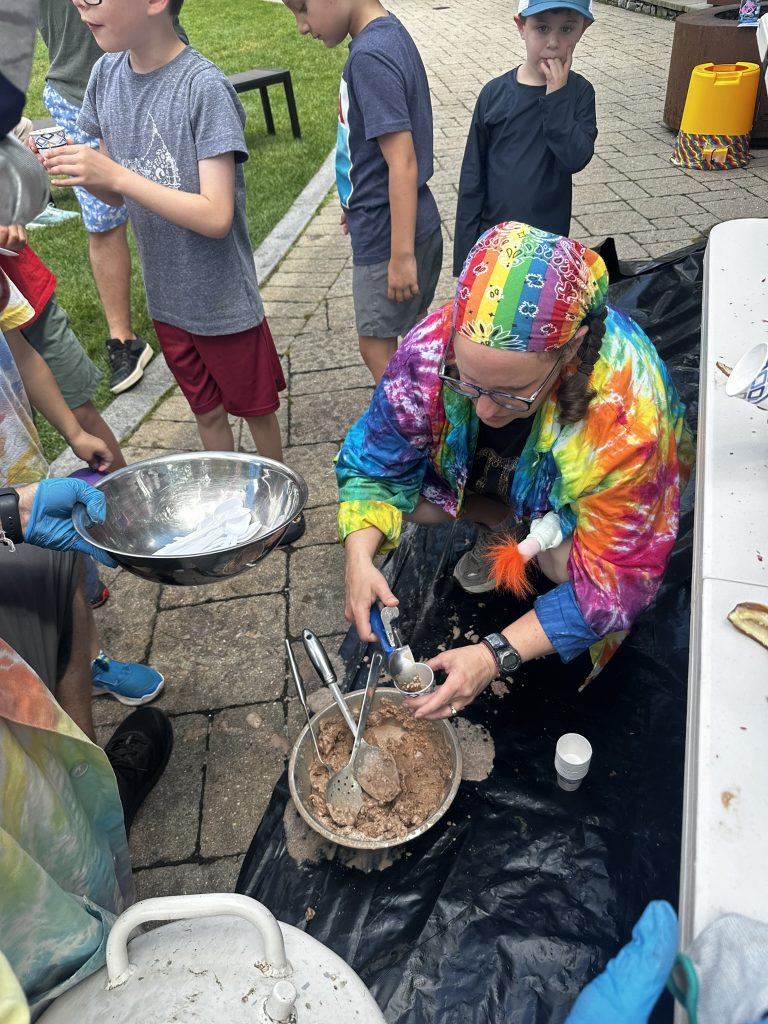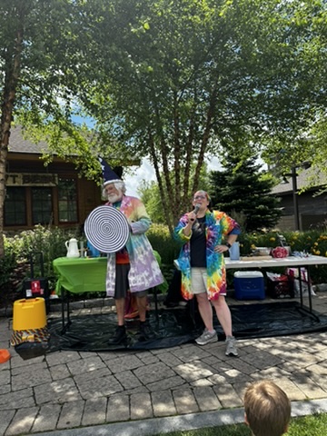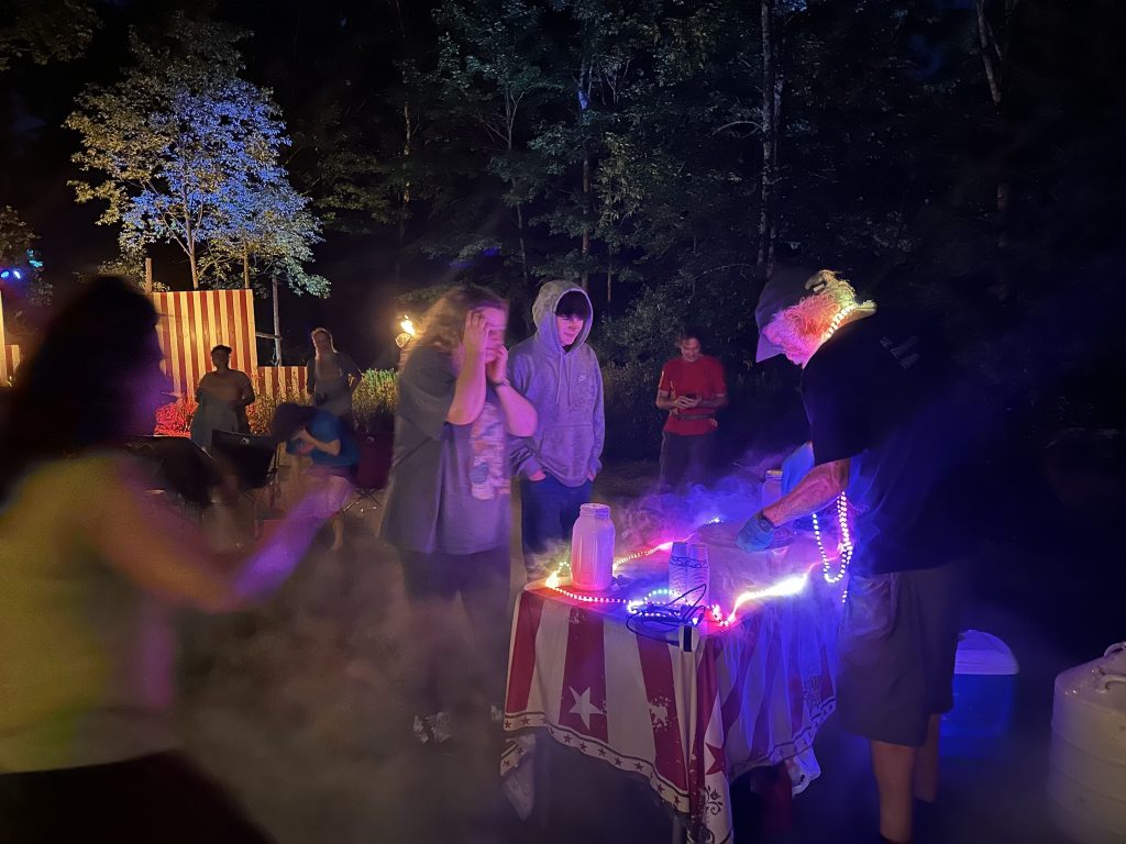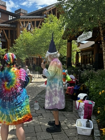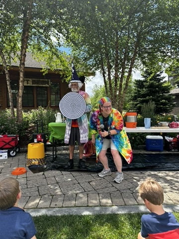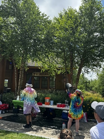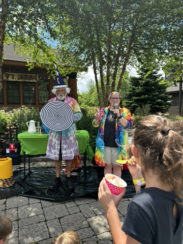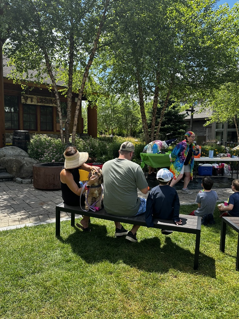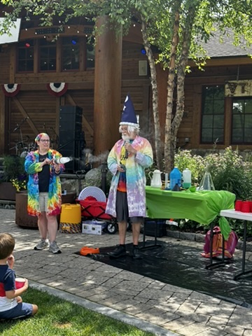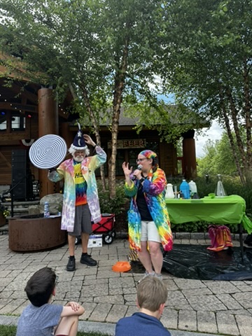 Today DIane and I drove up to Spruce peak to do a sceince show as part of the Stowe Homgrown festival. Our freinds Julliane and Belinda had helped organize it. >> It wa a beutiful hot day.. We were the first thing in the festival .. so there weren’t many people around. but we were able to rustle up about 15 kids and their adults.. It was a small but apriative crowd. It was really fun workign with Beaker.. she has such great energy !