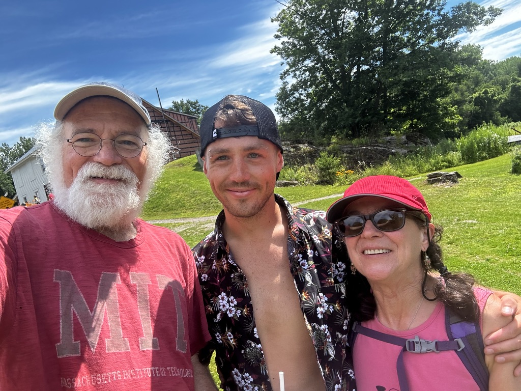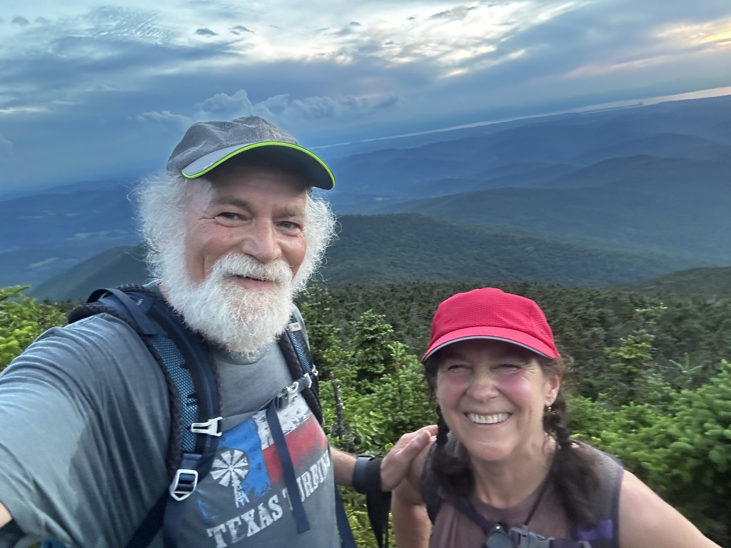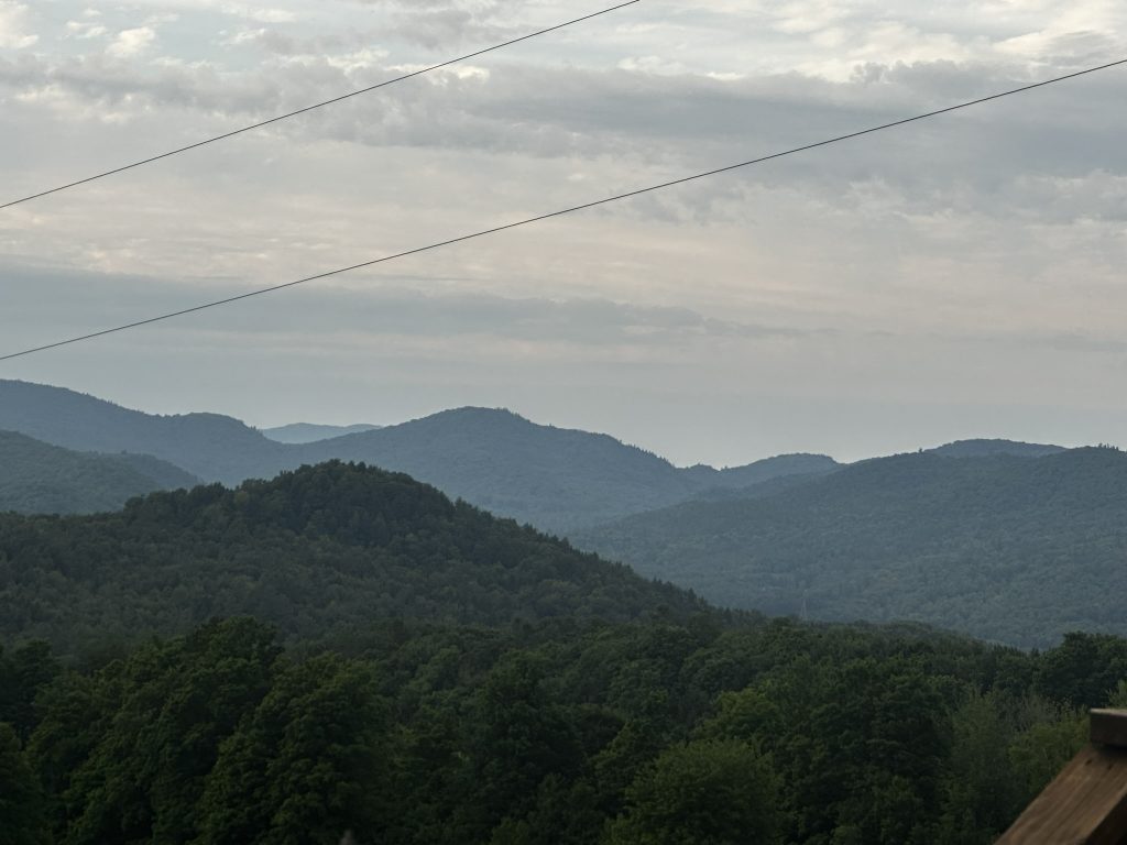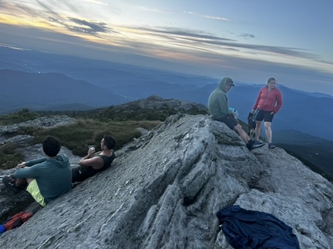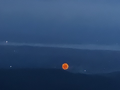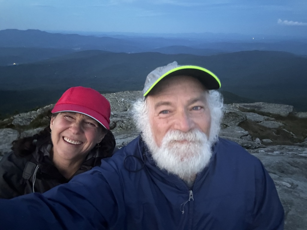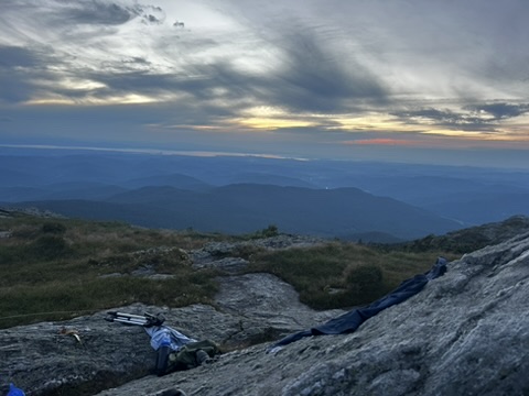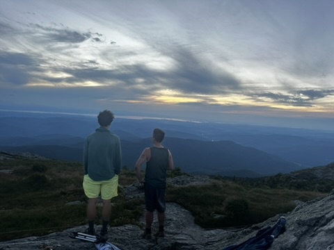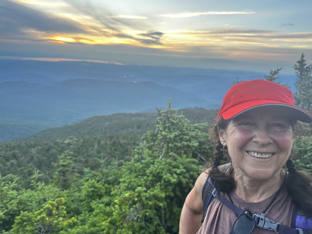 The hike idea we had was around fireworks. We were debating whether to go to the Richmond fireworks, but we knew they were fireworks and other towns… Diane had the great idea why don’t we watch them all. So at sunset, we hiked up camels hump… It was a hot climb, but by the time we got to the top, it was freezing. From there we were able to see, everybody’s fireworks from Morrisville, Stowe, Hinesburg, Sherlock, Shelburn, South Burlington, Dan Moore, New York, and… At the very end… The Richmond fireworks. It was such a great experience!… Walking down in the dark was hot and the moths really loved our head lamps.