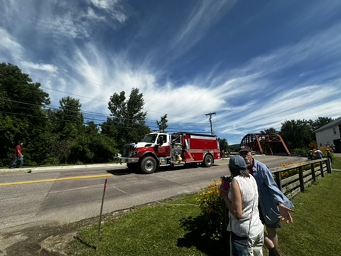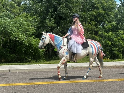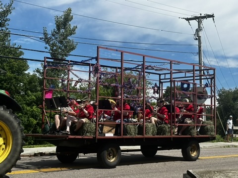 The parade was cute as always.. fire trucks, ambulances, folks on horses, farm equipment and a coupl of floats. Soem floats through candy.. one even through cheese !
