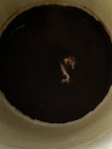 Then home.. look at the gunk in my coffee cup .. Looks like an ‘S” .. (thanks Sam!)