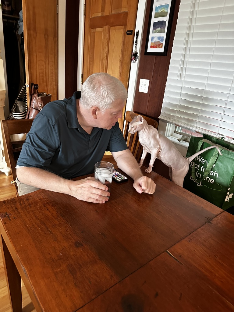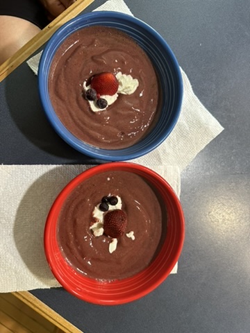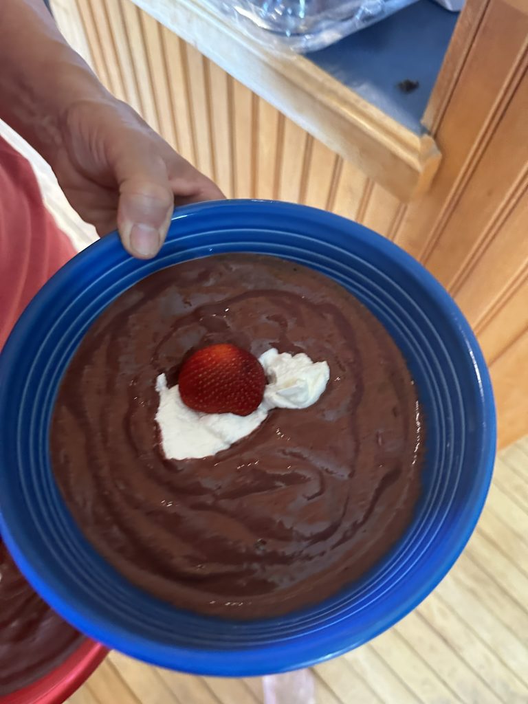Today is the 4th of July.. it’s sometimes can be a bitter sweet day for us.. We have such great memories of doing the parade with the kids, fireqworks.. picnics.. now it can feel a little empty.. Today turned out to be mostly sweet. It got off to a very sweet start.,. Diane made us red, white and blue frozen smoothy bowls using fruti from the back yard. That put us in the 4th spirit