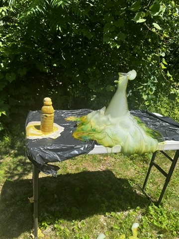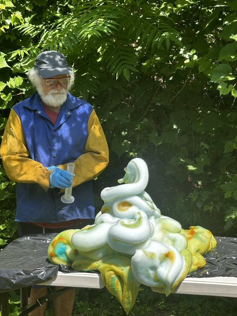 Mid morning we went up to Jullianes and Belindas to do a quick practive for tomorrows sceince show in Stowe. THere we met ‘Beaker’.. their lovely freind who was goign to do the show with us. We practiced a few sceince tricks.. Elephant toothpaste , spinning disk optical illusions. and smoke ring shooters.