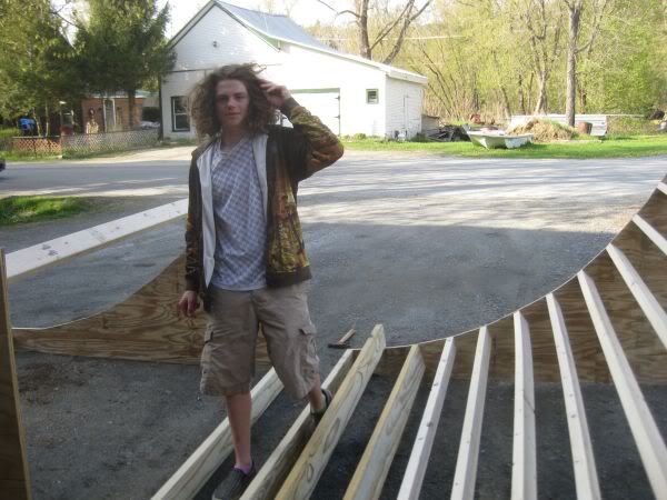 Around midday we started on a big project with Gabe. Our goal was to build a skate board half pipe. We’d baught all the lumber yesterday.. . Our goal was to get most of it assembled today.. we got pretty close ! The first step was to trace the pattern for the ramp sides on a 4×8 piece of plywood. Diane had the good idea to use the video projector. That worked pretty well !