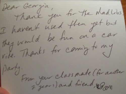 Georgias message had the scanned image of a thnk you card that Sam had written with Dianes help for his 7th or 8th birthday.. here’s the front