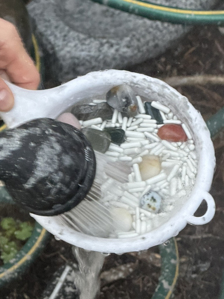 we did a few chores aroudn the house. Gabe emptied his rock tumbler
