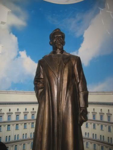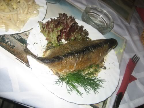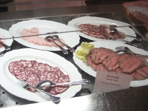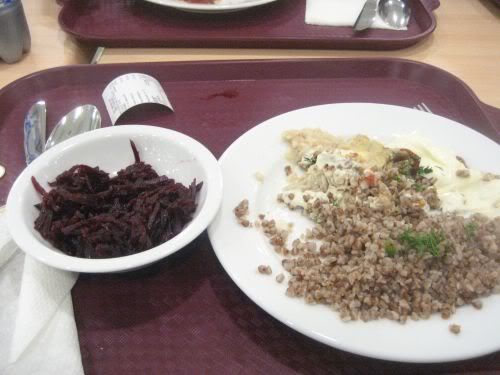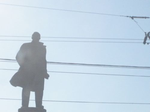 Lori had found a place in the guide book called the Sword and the Shield. It was right across from the old KGB building and had once been a hang out for the agents there. Now it was full of retro cold-war stuff, lots of pictures of Party aparatchick’s, statues, propaganda posters. And even old Soviet movies on the TV.It was certainly done up for tourists, but we were the only ones in the place. It was a little creepy..but the food turned out to be pretty good !