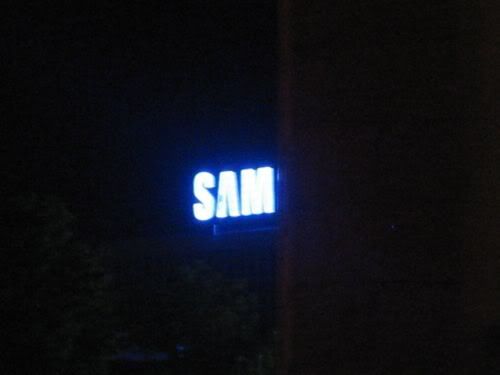 Sam – courtesy of a Samsung sign and a building to block some of it for my camera