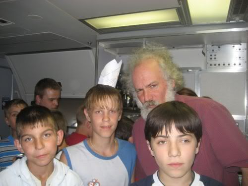 He is an aerospace engineer working with companies like Boeing to help them meet international safety guidelines. Mohamed is a Palestinian who went to grad school in Germany and now lives in Seattle. We talked for a good part of the trip about the middle east, religions, politicians, kids, families, Sam, travel. By the time we landed, we had worked out most of the world’s problems. He is a really good thinker. I hope we find a way to stay in touch. Another cool thing on the flight was tta there was a group of about 15 young kids from an orphanage in Moscow. They were going to NYC to do a band contest. The kids were wicked bored and the flight attendants were trying to find things to do with them.. I went back and taught them my favorite paper airplane design: the flying ring.We were tossing them all over the plane. It was good fun..