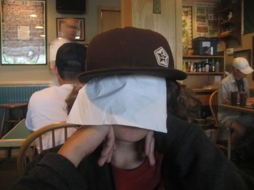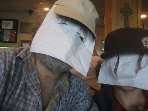 I had planned on going to the fundraiser myself.. but when I got home, I could tell that Gabe was bored. He did not want to go all the way to Shelburne Farms to watch the voices folks serve people dinner.. Even if max is a cast member.Sensing his mood, I changed the plan.. I invited Gabe tojust hang out with me … first we went to Cody’s for dinner.. (yum) .. Here we are just goofing around…