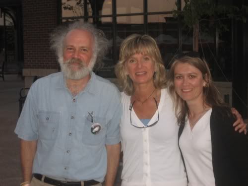 After work I met my friend and work colleague Garry for dinner.. we were heading towards Mexecali (my favorite).. but their computer was down so thy had to close. We walked over to Nicco’s instead and sat outside. The food was excellent.. and so was the weather. It was really great talking to Garry. He and I are in the same department.. Until recently, Garry was working here in Vermont, but living near Poughkeepsie NY. Every week he’d commute back and forth.. a few months back he was able shift most of his job back down to NY.. which is much better for his family life.. but leaves me as a department of 1 here in VT .The last couple of times Garry’s been up, I’ve been out of town. … so our meeting was long overdue. We talked about work, people, life, family, and Sam… Garry’s a thoughtful and wise person.. it was fun to connect. Mid way through dinner we heard a loud clatter and saw a kid pushing another kid as fast as he could in a shopping cart.,.. it was Mikey pushing and Casey in cart… I told Mikey to keep the receipt .. I wish I’d managed to get a picture of them. About a half our later two women walked up to us.. One of them approached me and asked me if I was me.. I mean.. she asked if I was john cohn. When I said I was, se said something like ‘this is to show how powerful Sam is’ .She told me that she’d never seen me,, never seen a picture of me.. had not seen my Sam button.. but had figured out that was Sam’s dad by ‘my energy’ from seeing me across the restaurant. She then introduced herself as Jeannie L. a new friend of Diane’s . . Our common thread is a sad one. Jeannie’s 8 year old daughter Ila died 3 years ago. Our friend Mark knows Jeannie through a number of connections. Mark connected her to Diane and they’ve gotten together several times to share stories. We talked about Sam and Ila.. and about other parts of our very changed lives. It is such a strange bond we have with others that have suffered a loss like ours.. but it’s such a strong connection. I could have spoken with her all night. Garry was kind enough to snap a picture of Jeannie, Me and Jeanie’s friend Sue.. (I just realized I didn’t get a picture of Garry !)