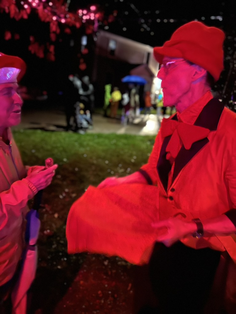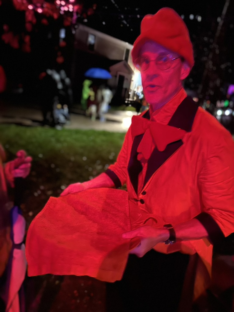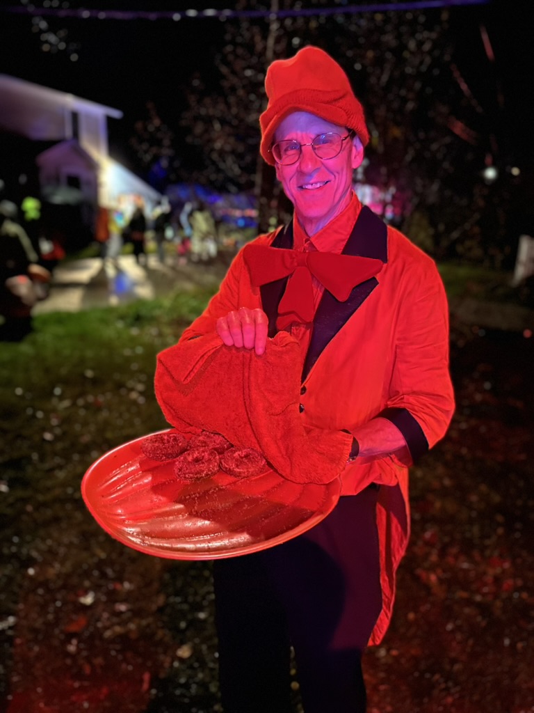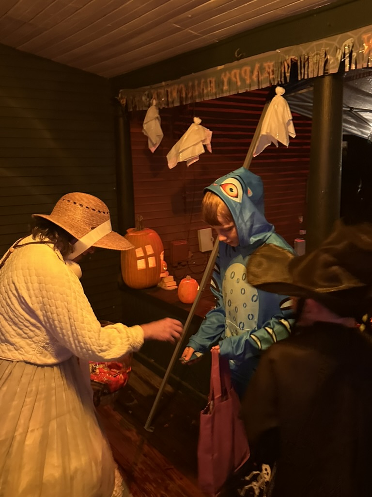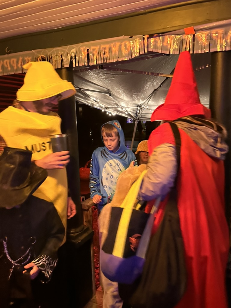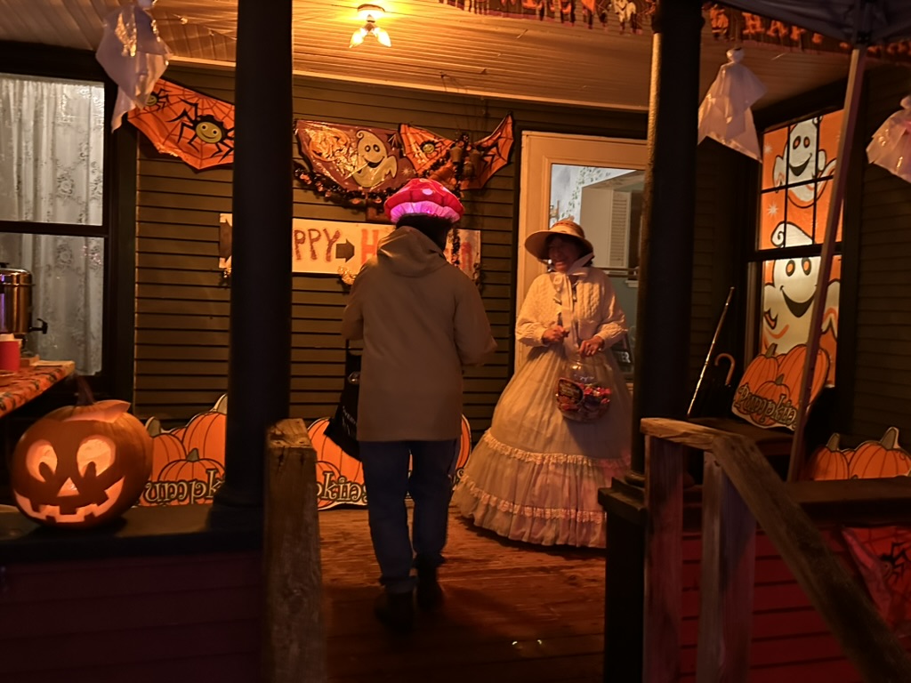 To make things a little tougher this yaer, there was a cold drizzle.. but we headed dow to Richmond anyway.. We were glad we did.. the rain let up a little bit.. andkids ans parents were out in full fource. We did our normal walk up and down, then settled in for a short visit at Gretchen and Marshalls. Marshal was givien out hot fresh doughnuts.. and we added a bag of candy to Gretchens buig pot. There were hundreds of kids coming though.. super fun..