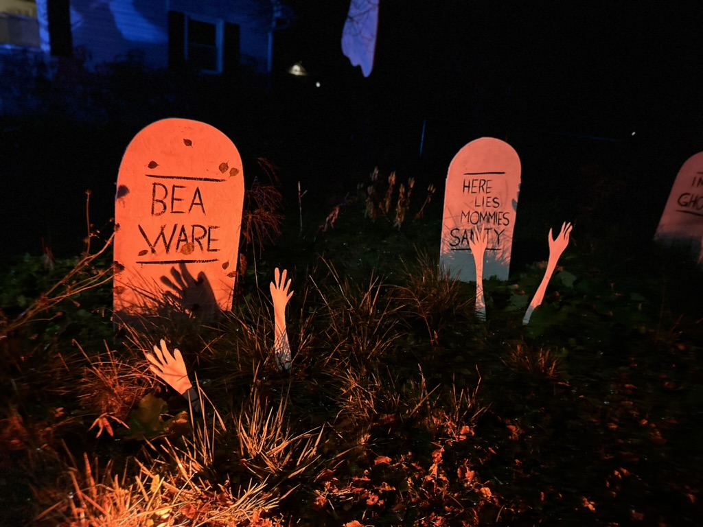 It started to rain again just as we’d had enough candy to last s. We went back home and cuddled up by the TV>. the perfect end of a halloween evening.