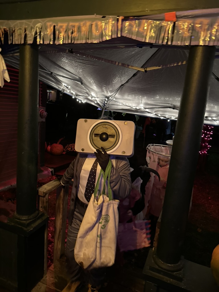 Today was halloween.. it had always been one of our family’s favorite holidays.. but now without kids in the house.. and can be a little sad. We make it better by goign out trick or treating ourselves.. we only had one trick or treater.. as usual.. it was Carlie from next door.. She was a Bee !