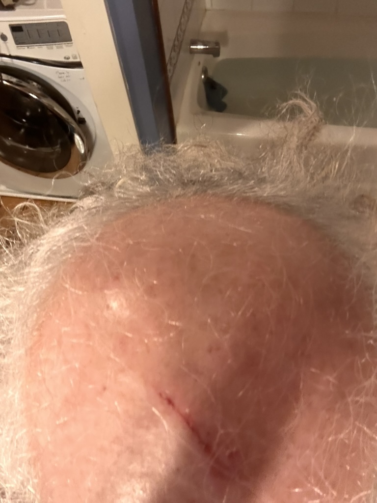 Ouch.. the other day Iwas moving around the baswmwnr and caught one of the jacks that hold up the floor. It cut me event through my hat.. its healed quite a bit.. but I forgot to take a picture when it was really gnarly !