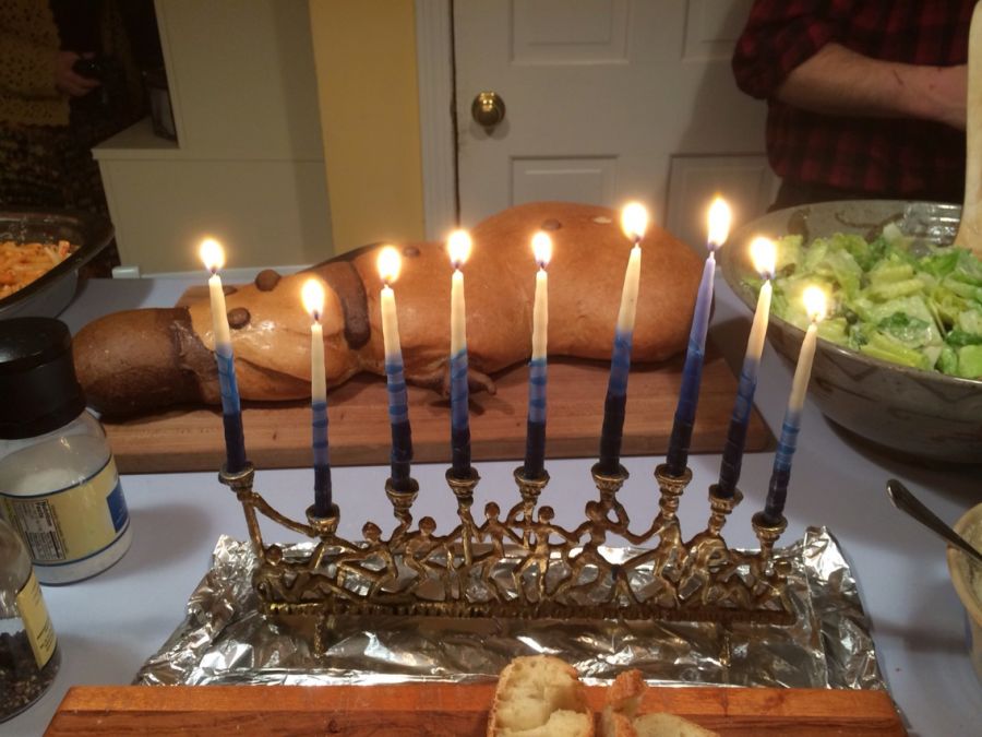 I got back just in time for us to head up to Jen and Tim’s for a nice get together.. all the kids are back in tow so it was fun to all be together. At the start of the meal, I lit the Chanukah lights and said the blessings for.. the last night..
