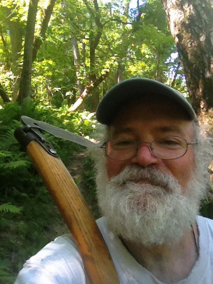 I also borrowed George and Jane’s weedwacker for the tougher parts.. The medieval approach is far more satisfying .