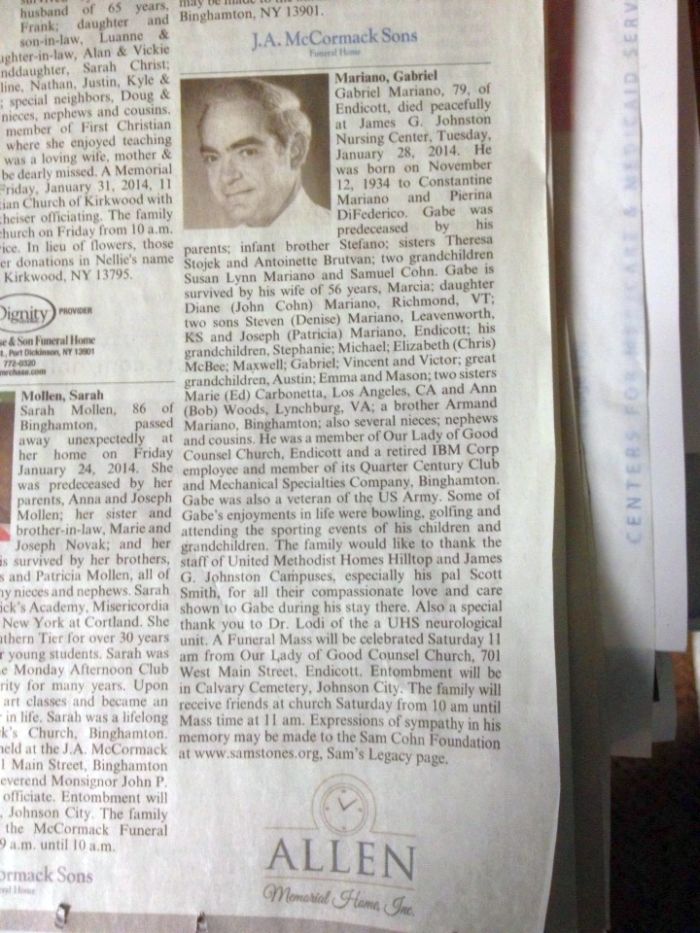 His Obit appeared in the local paper this morning..