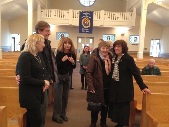 I asked Armond to take us the scenic route to the church.. so we drove through the hardcore downtown streets of binghampton, johnson city, westover, endwell, and endicott. We got to the church right on time.. I have always called it ‘Our lady of the railroad tracks’.. but it actually has a real name.. “our lady of good council”. I’ce been in there many times in the 32 years I’ve been part of Diane’s family . today it felt warm and welcoming..