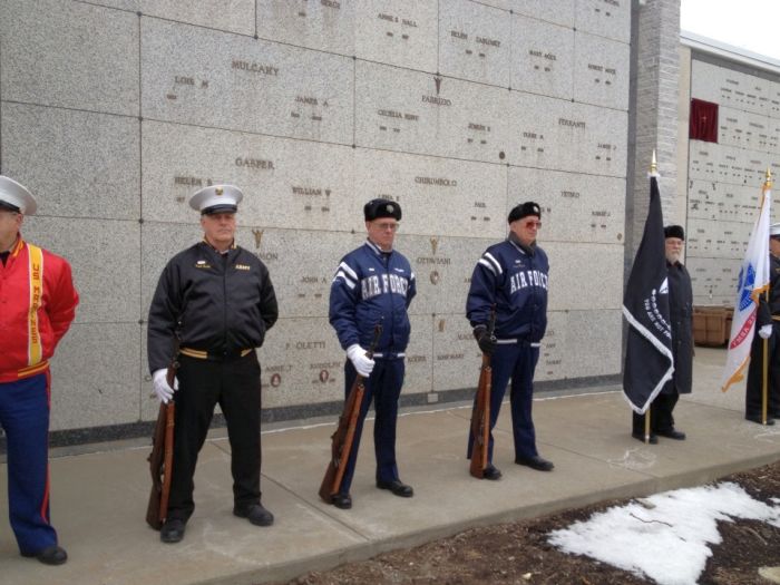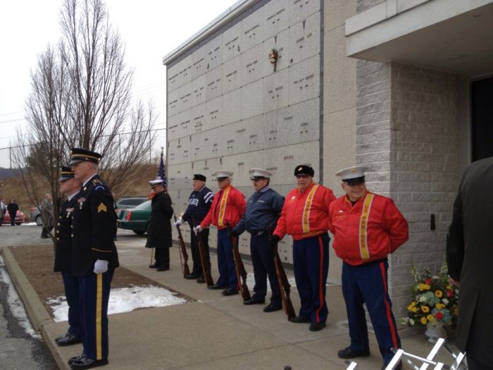 We drove up to the mausoleum where we were greeted by a full military honor guard of current military members and veterans. They gave Gabe a three shot salute and a full flag ceremony in honor of his service. It was very moving..